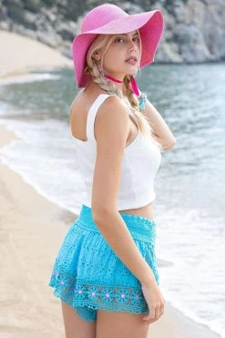 YC Fashion & Style Strandshorts »Strand Short Aus Spitze Mit Lochmuster Und Lange Quasten« (1-tlg) In Unifarben, Mit Kordelzug, Mit Elastischem Bund, Unifarben