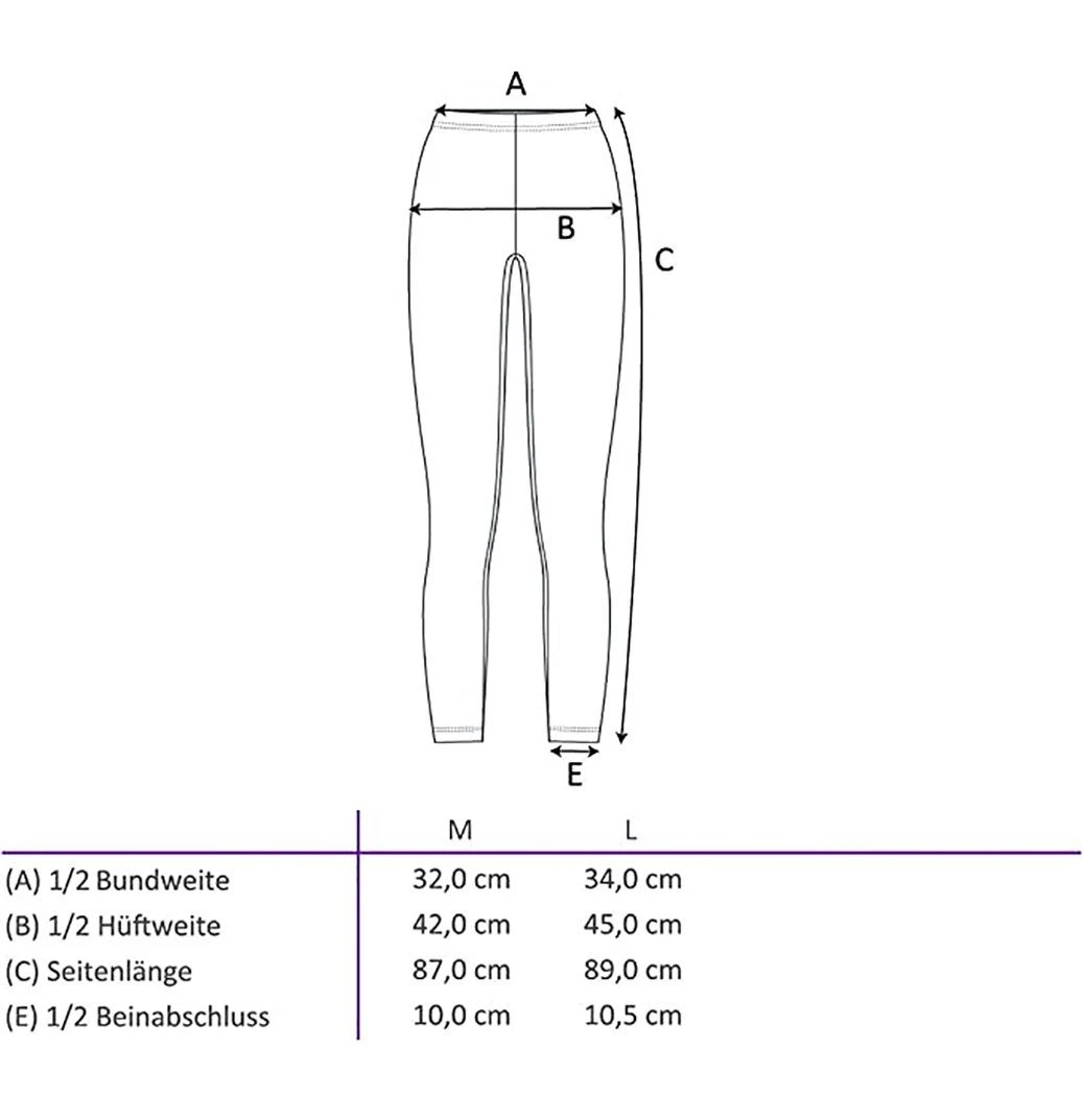 Aufgrund des hohen Baumwollanteils ist die Legging hautfreundlich, atmungsaktiv und pflegeleicht. Der Hüftgürtel ist mit bequemem Gummi ausgestattet und die Innenbehandlung ist glatt