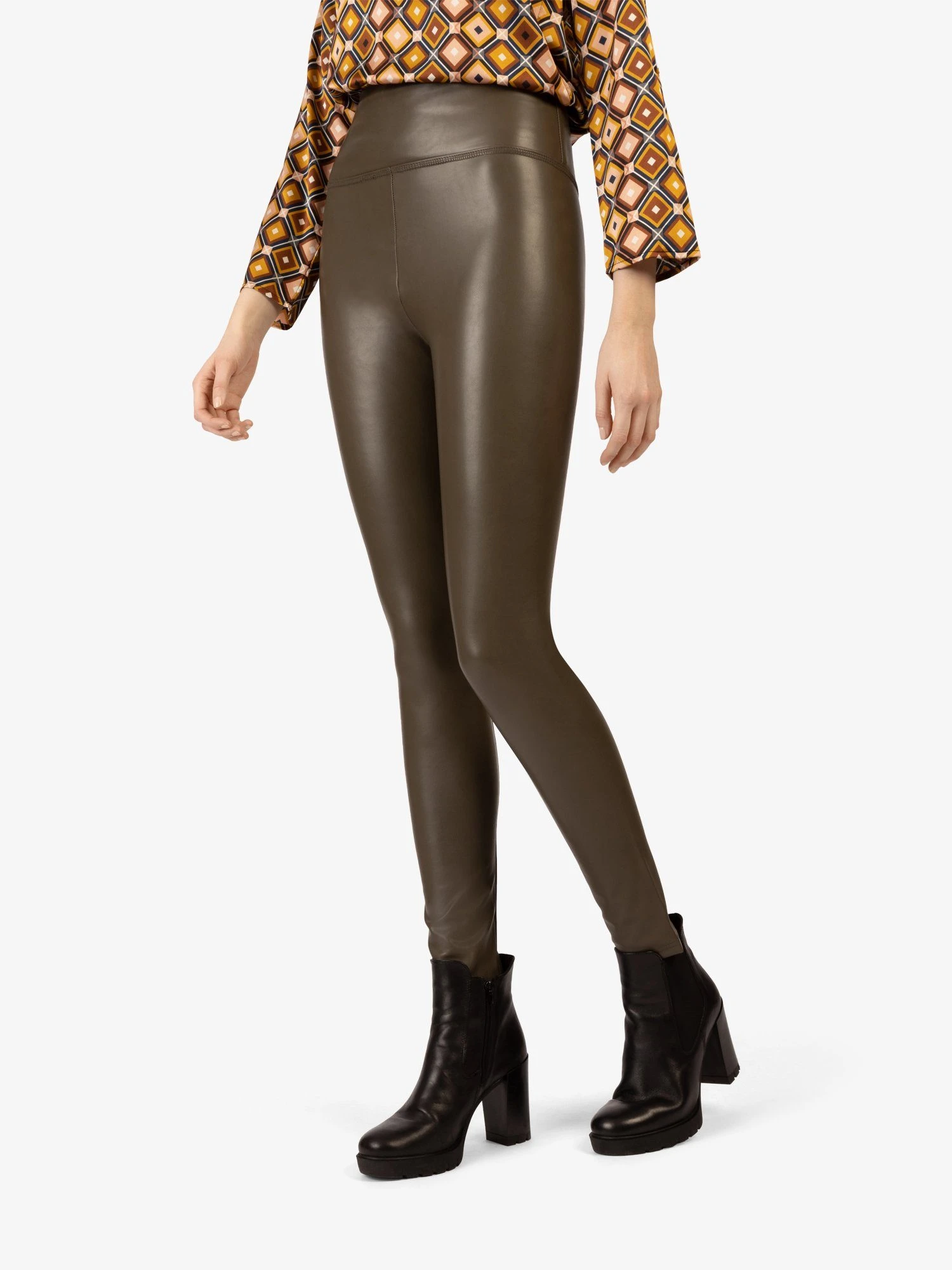 Schöne, Kunstleder-Optik APART Hose mit körperbetonende Form, ist sehr schön casual zu stylen, mit Sneakers oder auch elegant, mit Pumps, als Business Outfit.