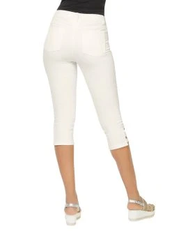 Premium-Qualität zum Hineinschlüpfen: Capri-Jeans mit hohem Baumwoll-Anteil, der für den angenehmen Tragekomfort sorgt. Sitzt perfekt und formt noch dazu eine tolle Figur. Mit Rundum-Dehnbund, zwei abgerundeten Taschen vorne und zwei Taschen auf der Rückseite. Die Beinabschlüsse zieren angesagte Cut-Out-Details. Fußweite ca. 38 cm. Ohne Gürtel. 91% Baumwolle, 6% Polyester, 3% Elasthan. Maschinenwäsche.