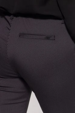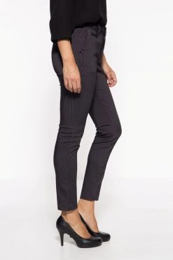 Egal ob chic oder leger, mit dieser Hose von ATT kannst Du immer punkten! Das elegante Streifenmuster mit Längsstreifen verleiht der Hose ihr edles Aussehen. Die Slim Fit Passform und der hohe Bund in High Waist lassen die Beine in Kombination mit den Streifen lang und schlank wirken. Für den optimalen Sitz sorgt der Stretchanteil im hochwertigen Gewebe. Eingrifftaschen im französischen Stil und eine Ziertasche auf der Hinterhose, sowie als Münztasche runden das Design gekonnt ab. Ob zur Bluse und Pumps oder zu Sneaker und Hoodie, die Damenhose von ATT passt perfekt!
