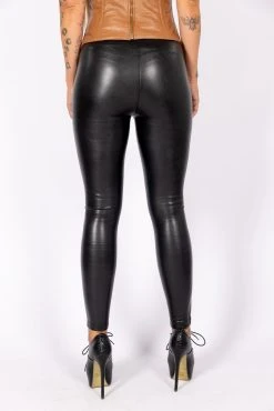 Leder-Leggings als vegane Leder-Stretchhose in Kunstleder in schwarz Das stretchige Material ist aus hochwertigem weichem Kunstleder. Die Leggings hat Steppungen an den Beinen und ist angenehm zu tragen. Sie ist sehr enganliegend und macht daher eine schlanke Figur. GefĂĽttert mit einem leichtem Thermofleece.