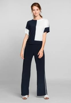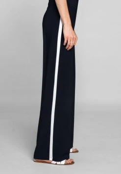 Event-Time mit unserer anlässlichen Hose Parigi. Die Stretchhose ist in ihrem cleanen Design mit weißen Galonstreifen ein absolutes Fashion-Statement. Die pflegeleichte Techno-Jersey Qualität ist mit strechigem Elasthan ausgestattet und ist super bequem. Die lockere Passform trägt zum Wohlfühlfaktor bei. Weitere Details, wie der angenehme Gummibund runden den Look perfekt ab. Unser Fashion-Tipp: Kombiniere die Hose mit dem Shirt Julie zu einem angesagten zweiteiligen Jumpsuit.