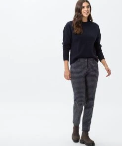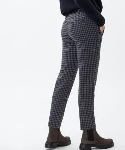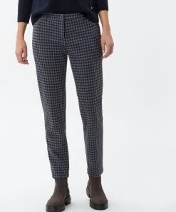 Zeigen Sie modische Kompetenz. Die Hose im Style Maron in winterlicher Thermo Jersey-Qualität überzeugt mit einen perfekten Sitz. Das geschmeidige und weiche Erscheinungsbild dieser Chino in edler Jersey-Qualität unterstreicht eine gepflegte Casual-Wear. So präsentiert sich die Chinohose für Damen in einem softem Viskosemix und im Slim Fit mit schmal zulaufendem Bein. Die Funktion der Chinohose mit wärmender Thermo-Ausrüstung begeistert. Zusätzlichen Tragekomfort in der Taille bietet der teilelastische Pull On-Dehnbund. Die cleanen Nahttaschen mit Zip und der elegante Bügelbruch runden den Stil dieser Hose ab. Gefällt mit mit klassischem Hahnentritt-Muster in gedeckten Farbtönen. So ziehen wir uns im Winter gerne an.Form: