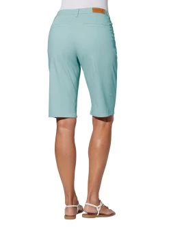 Sommerliche Bermudas mit Formbund, Gürtelschlaufen sowie Knopf- und Reißverschluss. Vorne 2 seitliche Taschen, die beiden hinteren sind angedeutet. Ohne Gürtel. 98% Baumwolle, 2% Elasthan. Maschinenwäsche.