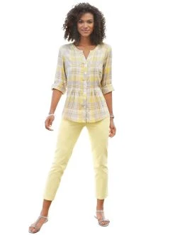 Knöchellange Hose in superbequemer Stretch-Qualität. In 5-Pocket-Form mit Gürtelschlaufen sowie Knopf- und Reißverschluss vorne. Rückwärtiger Sattel für eine optimale Passform. Fußweite ca. 36 cm. 96% Baumwolle, 4% Elasthan. Maschinenwäsche.
