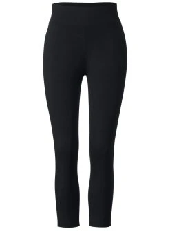 Ein dezenter Unistyle ziert diese Leggings von CECIL. Damit kommt die Damenhose sowohl sportiv als auch modisch trendy daher. Der dezente Unistyle bestimmt den optischen Auftritt in dieser Basic Damenhose von CECIL. Dabei wirkt die figurnah geschnittene Damenhose absolut sportlich und lässt sich vielseitig kombinieren. Darüber hinaus bildet an der Damenhose das 3/4 lange Bein mit einer 54er Länge  einen dezent sportiven Look. In der Gesamtheit entsteht so eine Damenhose , die sich dank der attraktiven und abwechslungsreichen Gestaltung immer wieder neu und individuell kombinieren lässt. Der breite Elastikbund bestimmt den modischen Stil der