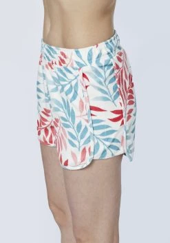 Sportlicher Look mit einem sommerlichen Blätterdesign – das ist die kurze Damen Frottee-Shorts von CHIEMSEE! Mit dem dekorativen Einsatz zwischen den abgerundeten Säumen wirst du in dieser kurzen Sweathose zum Instant-Blickfang. Während das klassische French-Terry-Material aus einer Baumwollmischung für ein weiches Gefühl auf deiner Haut sorgt, hält der elastische Taillenbund die Hose sicher und bequem an ihrem Platz.
