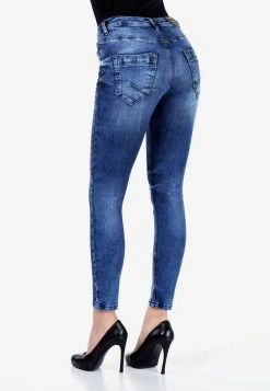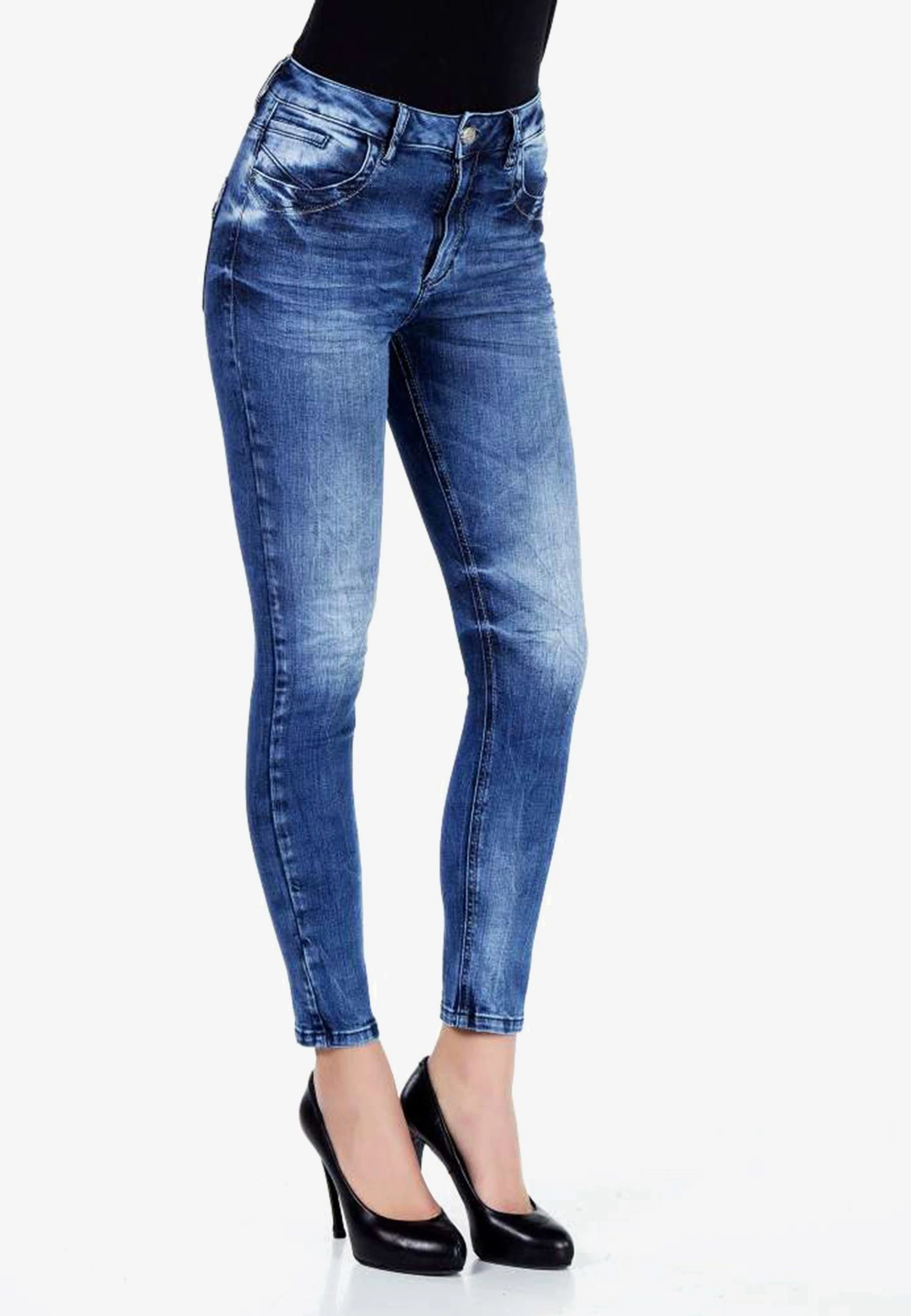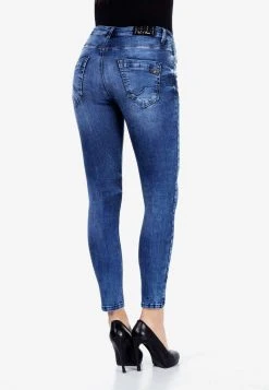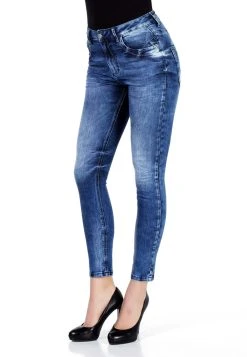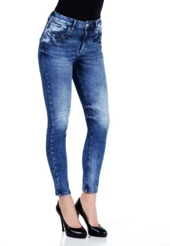 Jeans sind nach wie vor top-modern. Cipo & Baxx präsentiert dieses Slim Fit-Modell für Damen, das auf den Zug mit aufspringt und jedem Outfit das gewisse Etwas verleiht. Die 7/8-Länge der Hose legt gekonnt den Blick auf die Knöchel frei und setzt Schuhe perfekt in Szene. Eine schlichte Waschung verpasst dem Design den letzten Schliff – ein idealer Begleiter vor allem für modische Looks im Sommer.