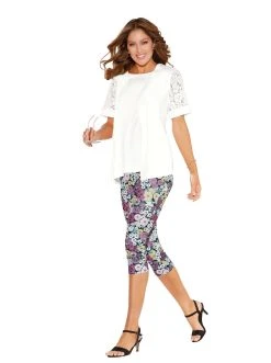 Bequem und topaktuell: Capri-Leggings im farbenfrohen Blütenmuster allover. Rundum-Dehnbund. 100% Polyester. Maschinenwäsche.