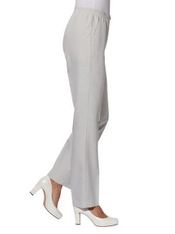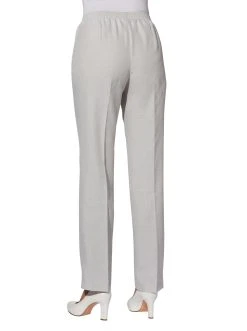 Sehr gepflegt! Hose in komfortabler Schlupfform und Leinen-Optik mit Reißverschluss-Blende vorne. Streckend durch die Bügelfalten. Der Rundum-Dehnbund mit glatter Partie und Zierknopf vorne sorgt für viel Bequemlichkeit. Seitenschlitze am Beinabschluss. 2 seitliche Taschen. Fußweite ca. 42 cm. 100% Polyester. Maschinenwäsche.