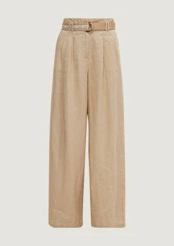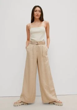 Hose. die Passform ist regulär, mit mittelhohem Bund, hat ein Wide Leg. in Unicolor. leicht, aus Webware, aus Leinen, in hochwertiger Qualität. Stoffgürtel mit D-Ring-Schließe, hat Gürtelschlaufen. hat eine Eingrifftasche, hat einen Hakenverschluss, hat eine Gesäßtasche, der Reißverschluss ist verdeckt.