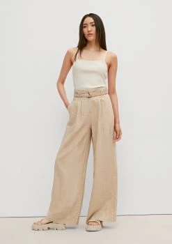 Hose. die Passform ist regulär, mit mittelhohem Bund, hat ein Wide Leg. in Unicolor. leicht, aus Webware, aus Leinen, in hochwertiger Qualität. Stoffgürtel mit D-Ring-Schließe, hat Gürtelschlaufen. hat eine Eingrifftasche, hat einen Hakenverschluss, hat eine Gesäßtasche, der Reißverschluss ist verdeckt.