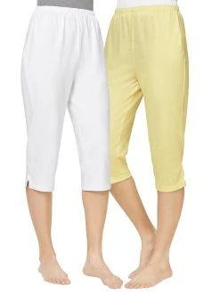 Sommerliebling im preiswerten Doppelpack! Capri-Hosen aus weichem Single-Jersey. Mit komfortablem Rundum-Dehnbund, Tasche und Seitenschlitzen. 95% Baumwolle, 5% Elasthan. Grau-meliert: 60% Baumwolle, 35% Polyester, 5% Elasthan. Maschinenwäsche.