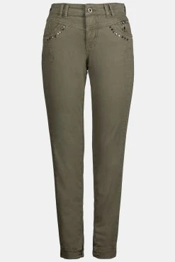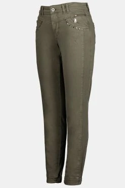 Knöchellange Cargohose Identity mit Eingrifftaschen, Taschen mit Schmucknieten. Bund mit Gürtelschlaufen, Knopf und Zipper. Saum hinten elastisch.
