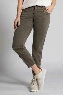 Knöchellange Cargohose Identity mit Eingrifftaschen, Taschen mit Schmucknieten. Bund mit Gürtelschlaufen, Knopf und Zipper. Saum hinten elastisch.