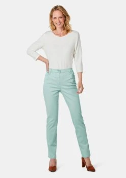 Baumwollhose in den vier Passformen CARLA, ANNA, LOUISA und MARTHA. Die leicht schimmernde Satinqualität schafft ein erstklassiges Gefühl auf der Haut, ist herrlich stretchbequem und formstabil. Schmaler sportiver Schnitt mit Stecktaschen und Gürtelschlaufen. Wahlweise mit Teildehnbund oder bequemem Rundumschlupfbund. Sattelpartie hinten für den perfekten Sitz. Saumweite CARLA/LOUISA/MARTHA je ca. 38 cm, ANNA ca. 36 cm. Gerade Beinweite.