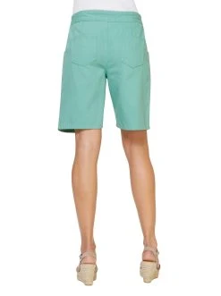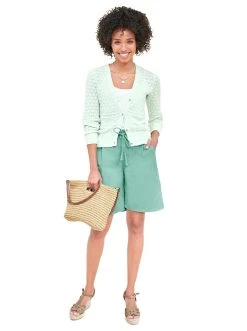Shorts Die wollen wir! Mit modischen Bundfalten, seitlichen Dehnbundeinsätze, Tunnelzug und Bindeband. Erhöhte Leibhöhe. Eingrifftaschen vorne, 2 aufgesetzte Gesäßtaschen hinten. Silberfarbene Knöpfe. Modisch weites Bein. Comfort Fit. Fußweite ca. 64 cm. Ohne Gürtel. Unterstützt die Initiative Cotton made in Africa. 100% Baumwolle. Maschinenwäsche.