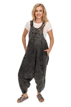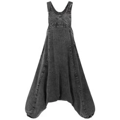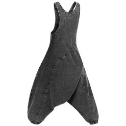 Die Weitgeschnitten Latzhose hat einen super bequemen weiten Schritt (Harem). Der Jumpsuit Overall im Vintage Style verfügt über einen Seitlichen Verschluss mit Knopfleise aus handgeschnitzten Knöpfen. Die Träger sind verstellbar, an den Beinen befindet sich ein elastische Bund so das sich die (Harems) Hose einfach an die Körpergröße anpassen lässt.