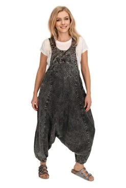 Die Weitgeschnitten Latzhose hat einen super bequemen weiten Schritt (Harem). Der Jumpsuit Overall im Vintage Style verfügt über einen Seitlichen Verschluss mit Knopfleise aus handgeschnitzten Knöpfen. Die Träger sind verstellbar, an den Beinen befindet sich ein elastische Bund so das sich die (Harems) Hose einfach an die Körpergröße anpassen lässt.