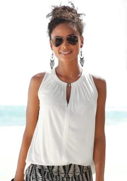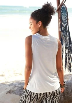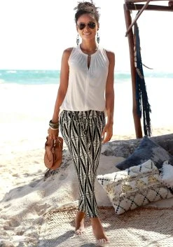 Die modische Strandhose von Lascana beweist, worauf es bei Beachwear ankommt – nämlich auf das perfekte Zusammenspiel aus Komfort und Style. Der grafische Alloverprint sowie das durchdachte Design machen die luftige Stoffhose zum absoluten Lieblingsteil. Das breite Bündchen, das hinten gesmokt ist, und der luftige Viskosestretch machen die luftige Hose extra komfortabel. Als praktischer Bonus kommen noch zwei seitliche Eingrifftaschen dazu, die die schmal geschnittene Druckhose zum idealen Begleiter macht, wenn es ans Meer geht. Kommt ohne Frage mit in den Urlaub – die dünne Sommerhose von Lascana.