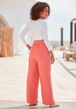 Das pure Sommer-Feeling! Mit dieser leichten Palazzohose von Lascana holst du dir ein modisches Kleidungsstück für die warmen Tage des Jahres in den Kleiderschrank. Die elegante Hose in frischem Orange besteht aus weich fließender Viskose und schmeichelt damit deiner Silhouette. Neben der coolen Schnittform mit extrabreitem Verlauf an den Beinen begeistert sie auch mit ihrer Paperbag-Optik oben am Bund. Dort sorgt ein Gummizug für optimalen Tragekomfort. Unter dem raffinierten Bindeband versteckt sich zudem ein Reißverschluss mit Schiebeknopf. Stell dir das mal vor: Du in der luftigen Lascana-Palazzohose, mit Tanktop, großem Sonnenhut und einer glamourösen Sonnenbrille. Super, oder?