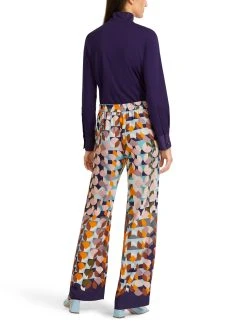 Hose im Retro-Dessin|Weich fließende Hose aus leichtem Material. Diese farbenfrohe Hose kommt im angesagten Retro-Dessin mit geometrischen Formen. Für Tragekomfort sorgt die weite Silhouette mit elastischem Bund. Seitentaschen bieten Platz für Notwendiges. Die Beine sind gerade geschnitten, der Hosenschlitz ist per Naht angedeutet.|Farbe: royal purple|Weite Silhouette|Made in Europe|Das Model ist 179 cm groß und trägt N3/38.|Mit Seitentaschen||||