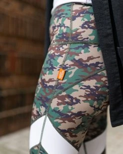 Die ROCKZ ARMY Leggings im beliebten camouflage Look in typischen Grün- und Brauntönen macht deinen ARMY Style komplett. In Sachen Komfort hat MISSY natürlich wieder zahlreiche Testings durchgeführt, um ein super softes und wie zweites Hautgefühl zu kreieren. Der clevere High Waist Schnitt kaschiert gekonnt den Bauch und mit dem smarten Comfortbund kannst du wieder ganz flexibel entscheiden, ob du dein neues Lieblings- IT Piece hüftig oder high waste trägst, egal ob im Gym oder in deiner Freizeit. Die V-Shape Einsätze in weiß schmeicheln dabei Beinen, sowie Hüfte und die schräg auslaufenden Hosenbeine verleihen der Leggings den letzten uniquen Schliff. Durch den elastischen Bund und die ergonomischen Kontrastnähte rutscht die Leggings nicht, sorgt für optimalen Halt – auch während deiner Workout-Einheit – und ist absolut blickdicht!