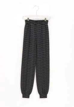 Overlock-Nähte im Höschenteil, nahtlose Beine, erhöhen den Komfort. Die Hose schmiegt sich um die Oberschenkel und Knie, wird aber an den Waden breiter und endet an den Knöcheln mit einem breiten Saum. Der breite Teilbund teilt die Unterstützung des doppellagigen Gewebes für eine bessere Passform.
