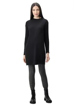 Overlock-Nähte im Höschenteil, nahtlose Beine, erhöhen den Komfort. Die Hose schmiegt sich um die Oberschenkel und Knie, wird aber an den Waden breiter und endet an den Knöcheln mit einem breiten Saum. Der breite Teilbund teilt die Unterstützung des doppellagigen Gewebes für eine bessere Passform.