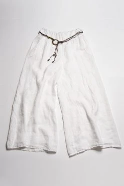 Eine luftig fallende Damen Leinenhose mit einem weiten Beinabschluss, die dich sofort in Urlaubsstimmung versetzt. Die Schlupfhose hat einem breiten Taillenbund für einen angenehmen Tragekomfort an warmen Tagen. Sie verfügt über Gürtelschlaufen und einen Bindegürtel aus Textilfasern und Kunstperlen. Das Gewebe in typischer Leinenstruktur ist angenehm und leicht auf der Haut. Die kühlenden Materialeigenschaften von Leinen sind perfekt für den Sommer. Kombiniert mit einer Bluse und sommerlichen Sandalen werden Sie zu einem echten Hingucker.