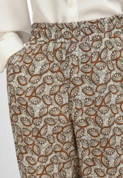Knöchellange Hose von PETER HAHN zum Schlupfen mit elastischem Bund und 2 Taschen im Vorderteil. Aus softem Gewebe in 100% Viskose mit edlem Minimal-Dessin, durch das jede Hose zum Unikat wird. Schrittlänge in Normalgröße ca. 74 cm, in Kurzgröße ca. 70cm. Fußweite ca. 32cm. Diese Hose ist maschinenwaschbar.