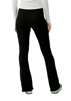 Hose. hat ein Flared Leg, sitzt normal am Oberschenkel, mit mittelhohem Bund. in Unicolor. Synthetik, hat eine Musterstruktur, Jersey, elastisch. mit Elastikbund. im modischen Look.
