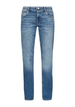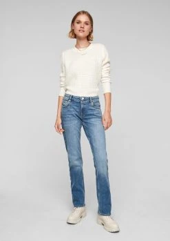 Q/S By S.Oliver Stoffhose »Slim: Straight Leg-Jeans« (1-tlg) Leder-Patch, Waschung