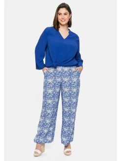 Die weit geschnittene sheego Hose erhält durch das auffällige Muster einen sommerlichen Touch. Besonders bequem präsentiert sich der elastische Schlupfbund, zwei Eingrifftaschen von und zwei aufgesetzte Taschen hinten ergänzen den Look. Der legere, weite Schnitt fällt angenehm locker über die Beine, die weich fließende Qualität trägt sich angenehm leicht.