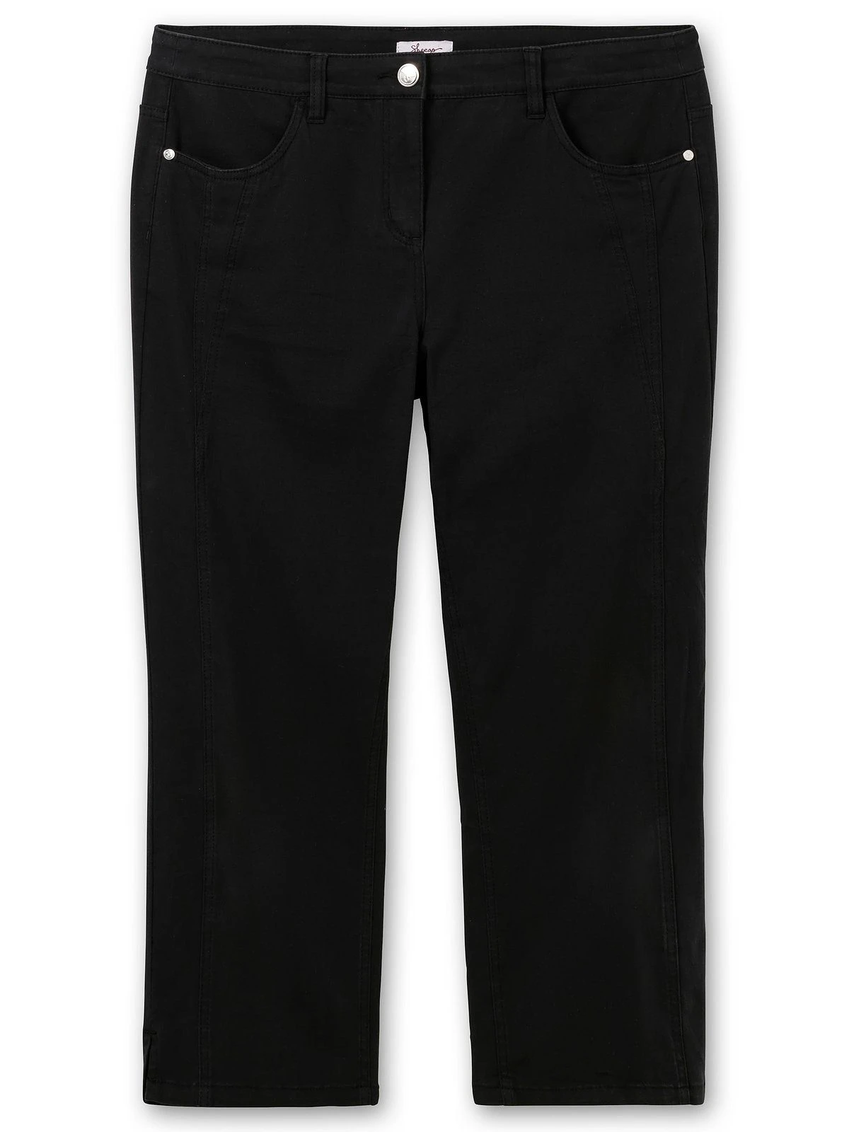 Die Hose von sheego in weicher, elastischer Twillqualität ist gerade geschnitten und endet in knöchelbedeckender Länge. Für noch mehr Komfort ist die Hose ab Größe 50 mit elastischen Einsätzen seitlich gearbeitet. Teilungsnähte vorn wirken optisch streckend, dazu kommen der Formbund und eine Passe hinten. Gürtelschlaufen und vier Taschen runden den klassisch-gepflegten Look perfekt ab.