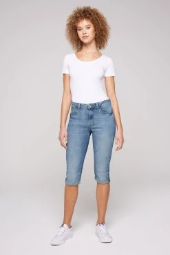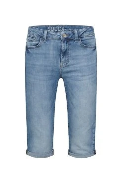 Ein zeitloses Summer Essential ist die knielange Capri Denim von SOCCX. Sie hat eine mittelblaue Used-Waschung und ist einfach immer gut für einen coolen Look der alles mit macht! Das Model ist 174 cm groß und trägt W27.
