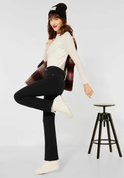 Dann schau dir mal die 5-Pocket-Hose »Style York« von STREET ONE genauer an. Die ausgestellte Passform der Hose ist an den Beinen weiter geschnitten. So haben Schuhe mit hohem Schaft genug Platz. Eine gute Grundlage also für alle, die auf der Suche nach neuen Outfits sind.