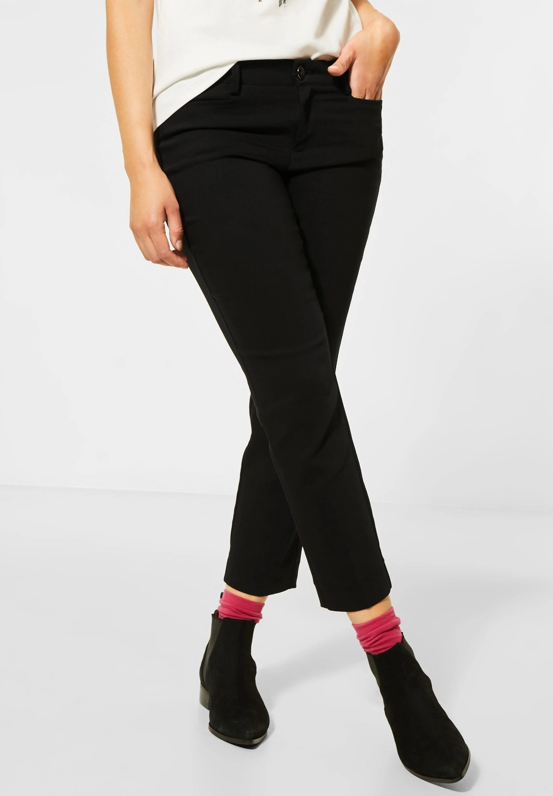 High Waist Hose mit Stretch, Straight Legs, Slim Fit, Reißverschluss, Knopf, Bügelfalte und 4-Pocket Style von Street One. Langer Bürotag geplant? Die High Waist Hose im Style Tilly von Street One sitzt dank Stretch und gerade geschnittenen Hosenbeinen stets bequem. Der Slim Fit sorgt dabei für eine feminine Figur und die dezente Bügelfalte rundet den Businesslook ab.