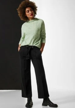 Street One, Damen Loose Fit Hose, Middle Waist, Wide Legs, Unifarbe, Elastikbund mit Tunnelzugband, Biesenfalten, Punto di Roma, softer Jersey. Lieblings-Style! Die Loose Fit Damenhose von Street One zeigt sich im modernen Style mit umspielenden Wide Legs und mittlerer Bundhöhe. Das fließende Punto di Roma Material in Unifarbe bekommt mit den Biesenfalten edle Hingucker. Für hohen Tragekomfort sorgt der elastische Bund mit Tunnelzugband zusammen mit dem extra soften, fließenden Jersey in Premiumqualität.