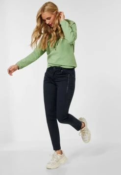 Street One, Casual Fit Damenhose, Middle Waist, Slim Legs, Unifarbe, Reißverschluss mit Knopf, Dekozipper, 4-Pocket Style. Hosen-Liebling! Die Casual Fit Damenhose im Style Yulius von Street One lässt sich mit ihrer Unifarbe jeden Tag neu stylen. Dabei sitzt sie mit Middle Waist sehr bequem, während Slim Legs tolle Beine zaubern. Die schlichte Optik erhält durch Dekozipper ein modisches Update. Ergänzt wird der 4-Pocket Style durch einen Reißverschluss mit Knopf.