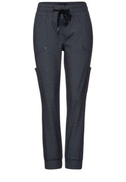 Street One Loose Fit Damenhose, Middle Waist, Slim Legs, Jacquard, Tunnelzugband, Eingriffstaschen, Cargotaschen, Elastikbund. Sporty Season! Im sportlichen und lässigen Look zeigt sich die Loose Fit Damenhose im Style Bonny von Street One. Middle Waist und Slim Legs sorgen für ein easy Tragegefühl. Mit dem Jacquard ist die Hose ein Hingucker. Elastikbund, Tunnelzugband, Eingriffstaschen und Cargodetails runden den Fit perfekt ab.