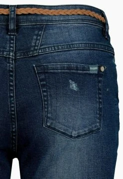 SUBLEVEL Bermudas Damen Capri Hose Jeans Shorts 3/4 Hose Short Bermuda Mit Flechtgürtel