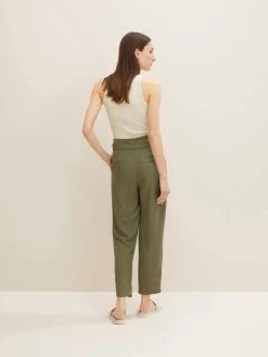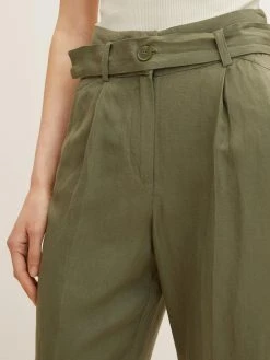 Stoffhose mit Teilungsnähten für Frauen (mit Knopf und Reißverschluss) aus Materialgemisch mit leichtem und atmungsaktivem Leinen, mit Teilungsnähten auf der Frontseite