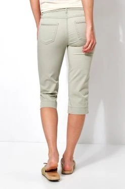 Sommerliche Caprihose »Perfect Shape« von TONI aus kühler Baumwolle, mit Shapingeffekt an Bauch und Po, breiten Säumen und dezenter Schmückung auf den Hinterhosentaschen.