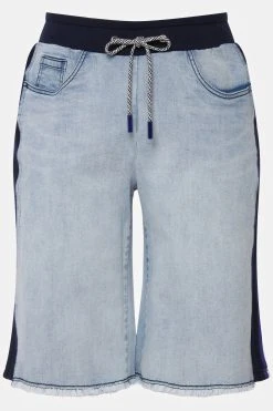 Ulla Popken Stretch-Hose Boyfriend-Jeansbermuda Rippbund Kordel Fransen