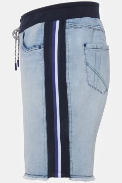 Boyfriend-Jeansbermuda, modisch gewaschen. Kordel und seitlichem Stretch-Streifen. 5-Pocket mit Fransensaum.