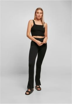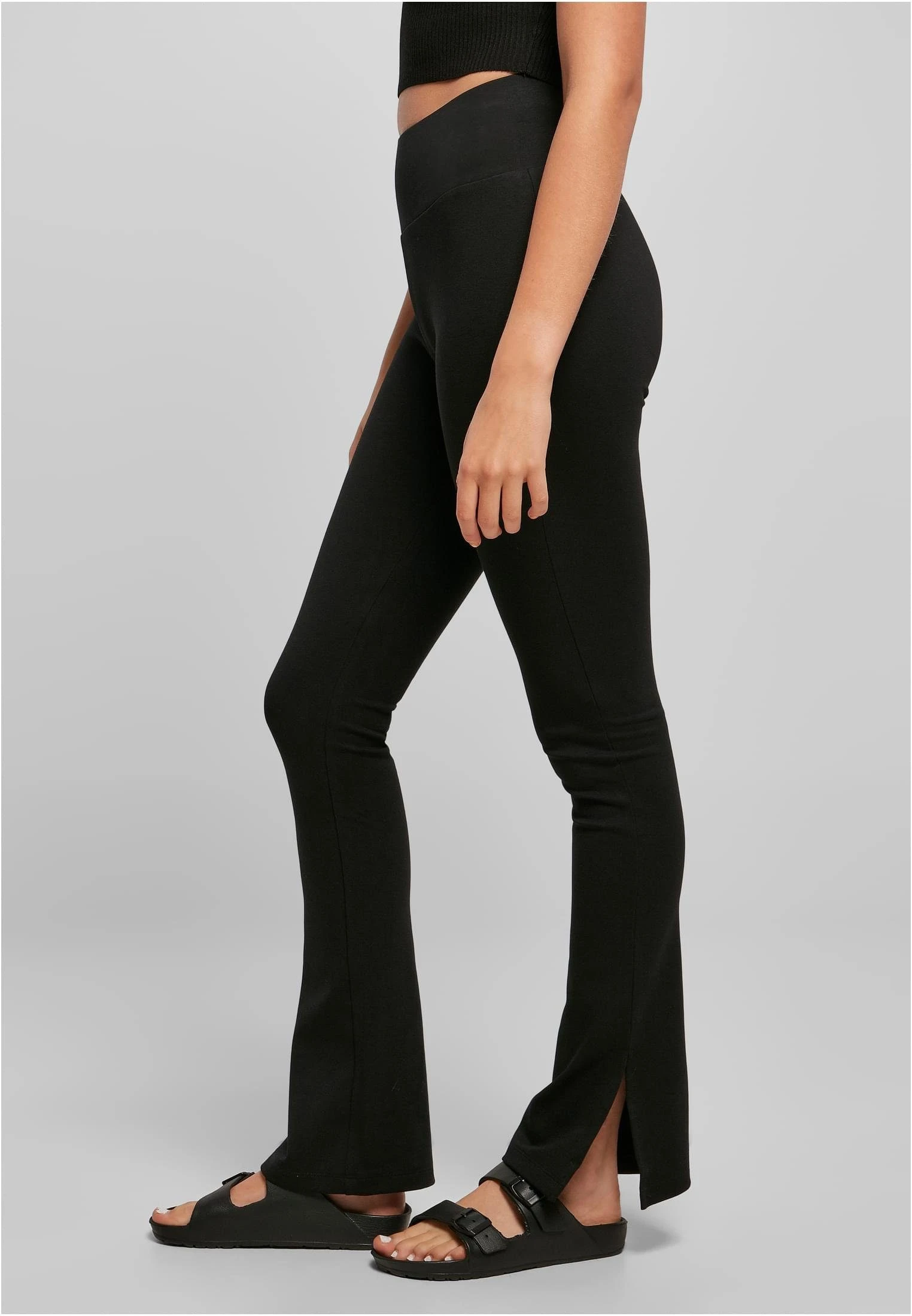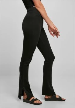 Die Damen Leggings vereinen gediegenen Tragekomfort mit einer besonderen Optik: die Beinenden sind leicht geschlitzt und fallen ausgestellt über die Schuhe. Für eine hautnahe Slim Fit Passform sorgt das bequeme Material aus Polyester und Elasthan-Interlock. Noch mehr Tragekomfort bringt der hohe Schnitt der Damen Sporthose mit einem breiten Gummibund kurz unterhalb des Bauchnabels.
