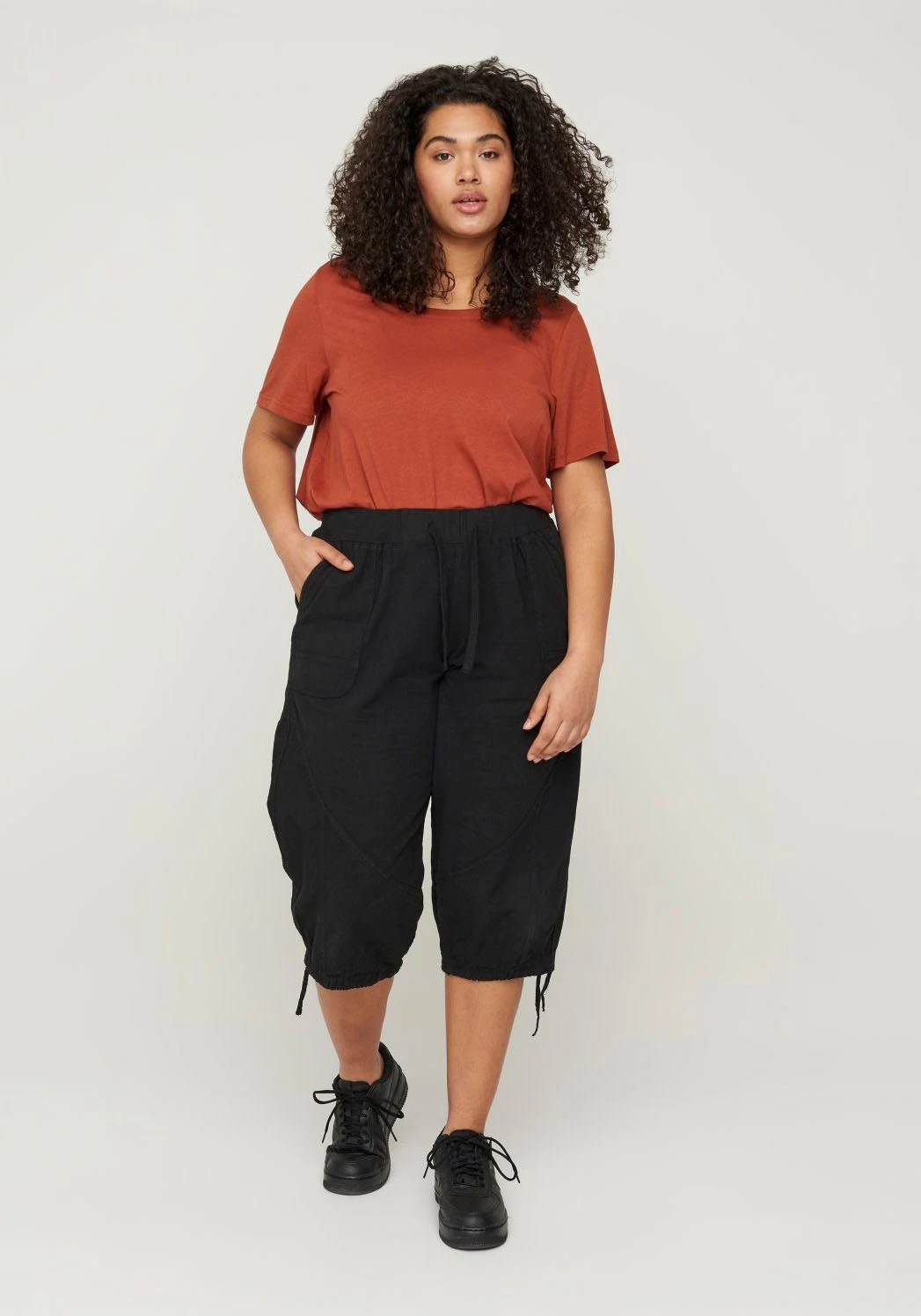 Die Caprihose von Zizzi wird dir dann viel Freude bereiten. Die weite Passform der Hose hat einen lockeren Schnitt und umspielt auch kräftige Beine schön. Eine gute Grundlage also für alle, die auf der Suche nach neuen Outfits sind.